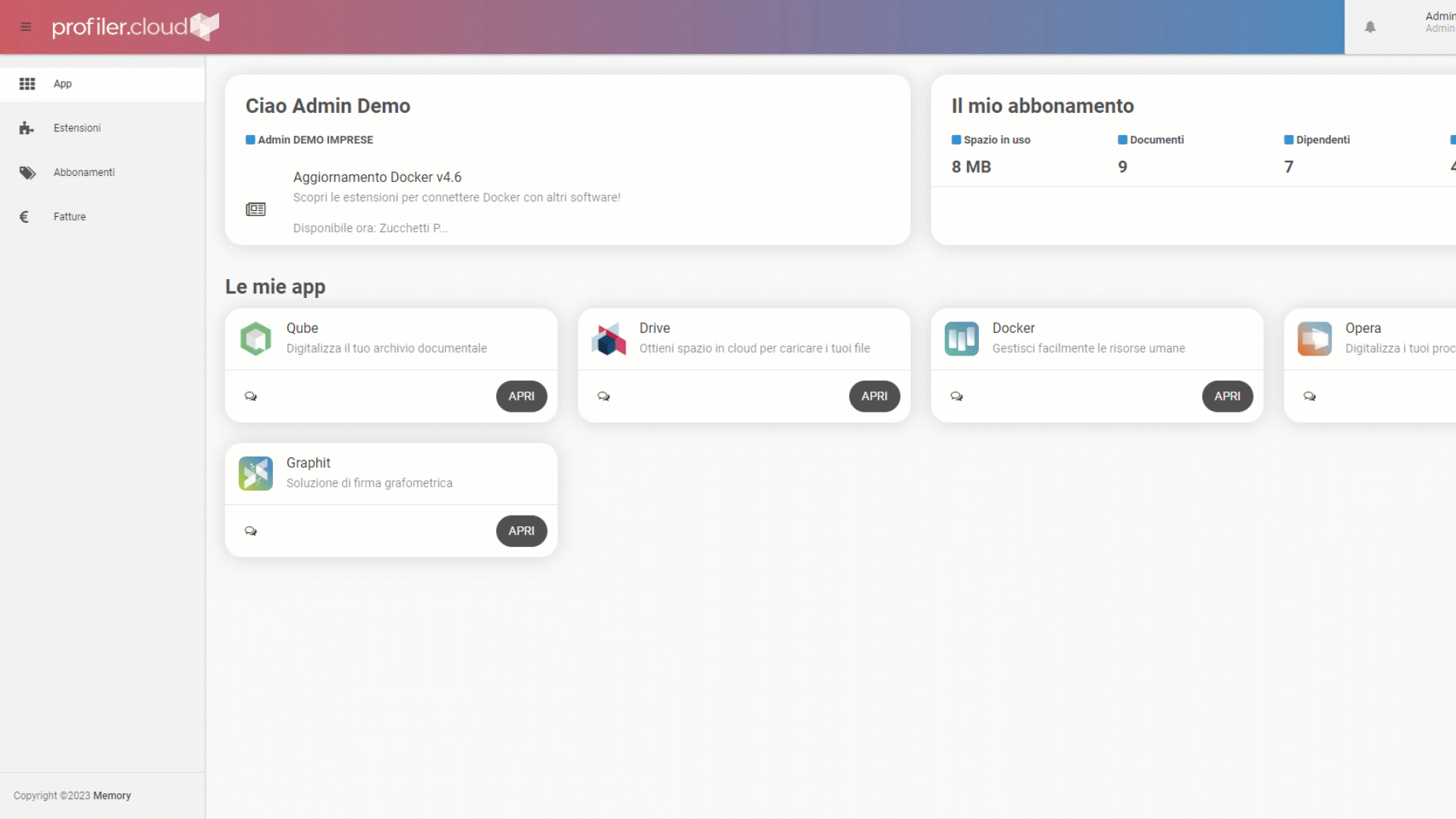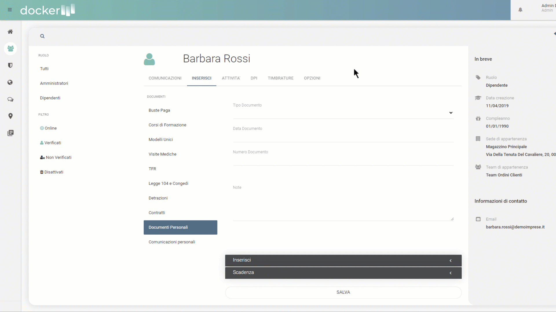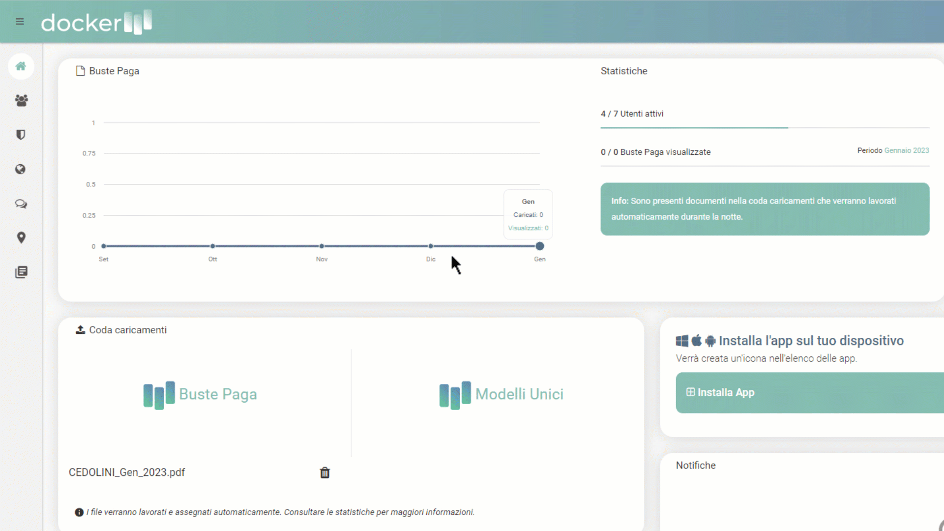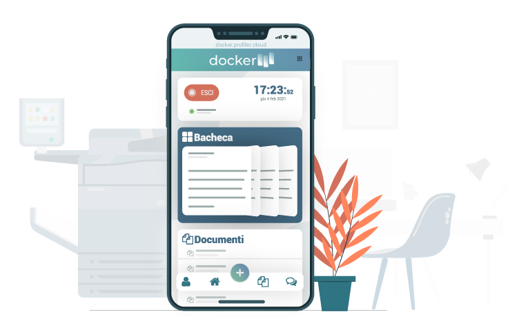 Docker è un software cloud, appartenente alla piattaforma Profiler.cloud, che non necessita di installazione ed hardware dedicato, in grado di automatizzare tutti i processi documentali e le comunicazioni tra azienda e dipendente